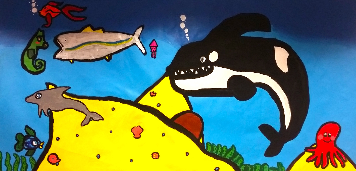 First, each class voted to select the theme. Next, we looked at other murals that also used the same theme. We critiqued them and talked about things that worked well on each, as well as some compositional pit falls that we wanted to avoid. This critique helped us to come up with some guidelines for our own drawings.